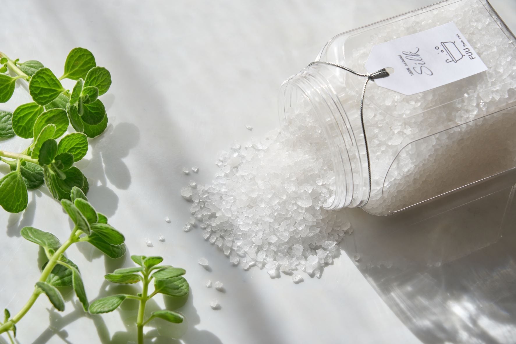 ◎塩の塩分により浴槽、風呂釜、排水溝周辺などの金属部分が錆びる恐れがありますので、ご使用後はよく洗い流してください。